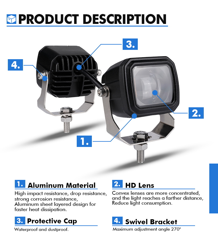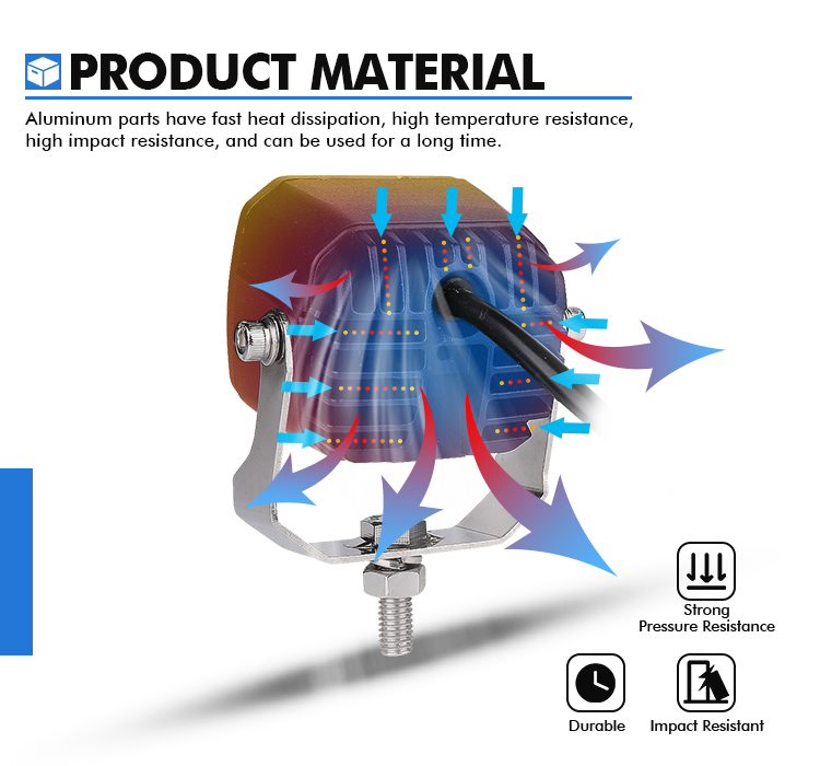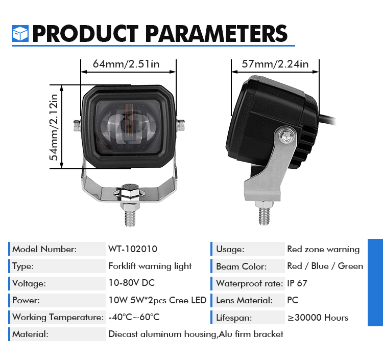 Die-cast aluminum housing absorbs vibration during forklift operation, while the PC lens resists scratches and impacts—ideal for rough handling and heavy-duty use.