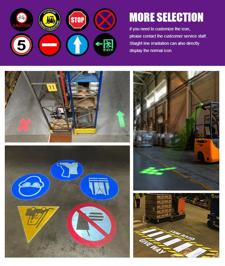 It has flexible projection angle and distance adjustment function, and with a wide projection range. Specifically engineered for industrial use—ideal for warehouse logo branding, zone marking, safety instruction projection, or equipment identification.