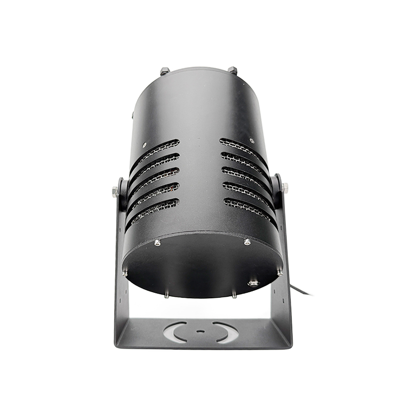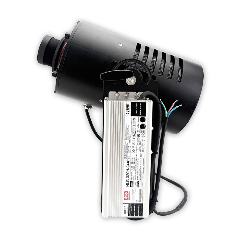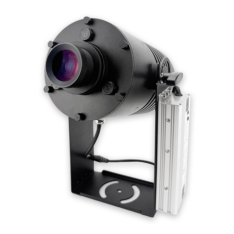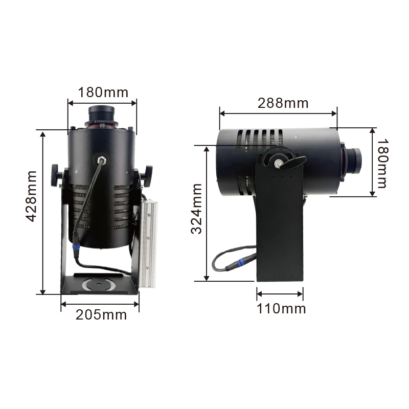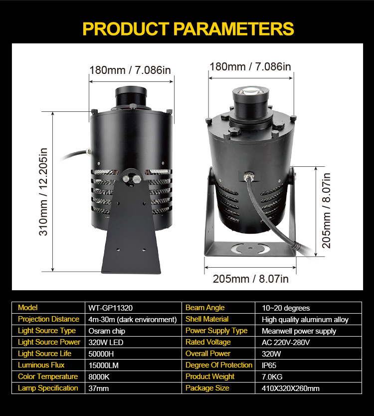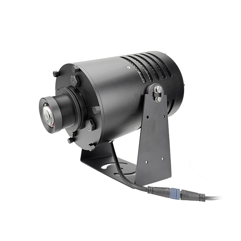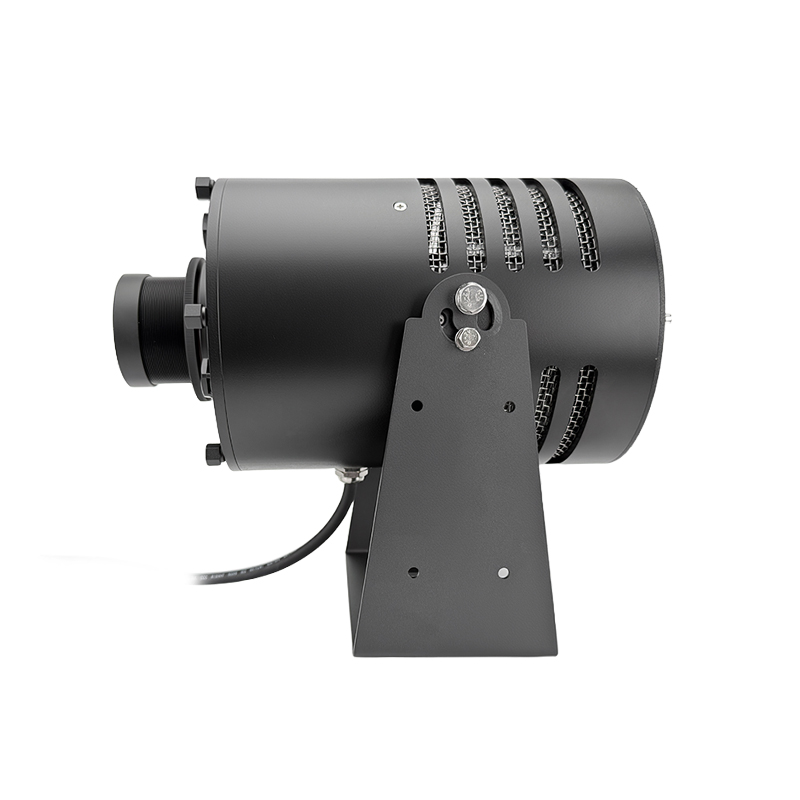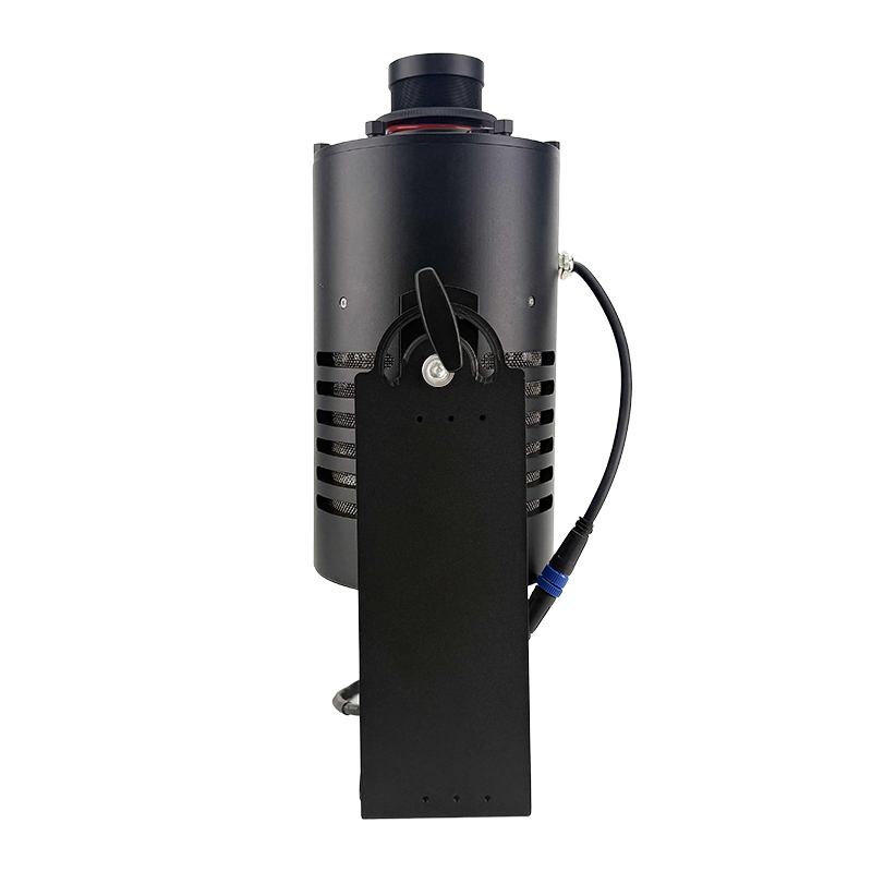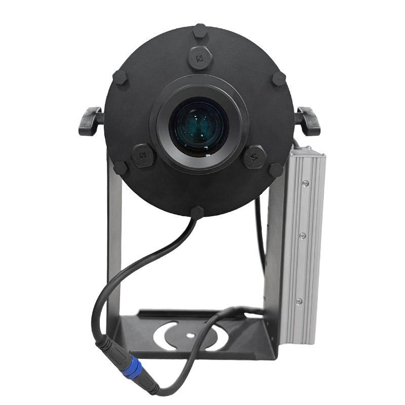 Unlike previous designs, the 320W gobo projector features a compact size and a bracket with easily adjustable mounting orientation, making it more affordable.