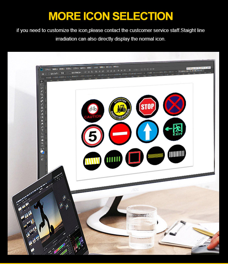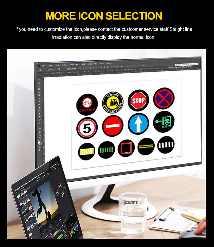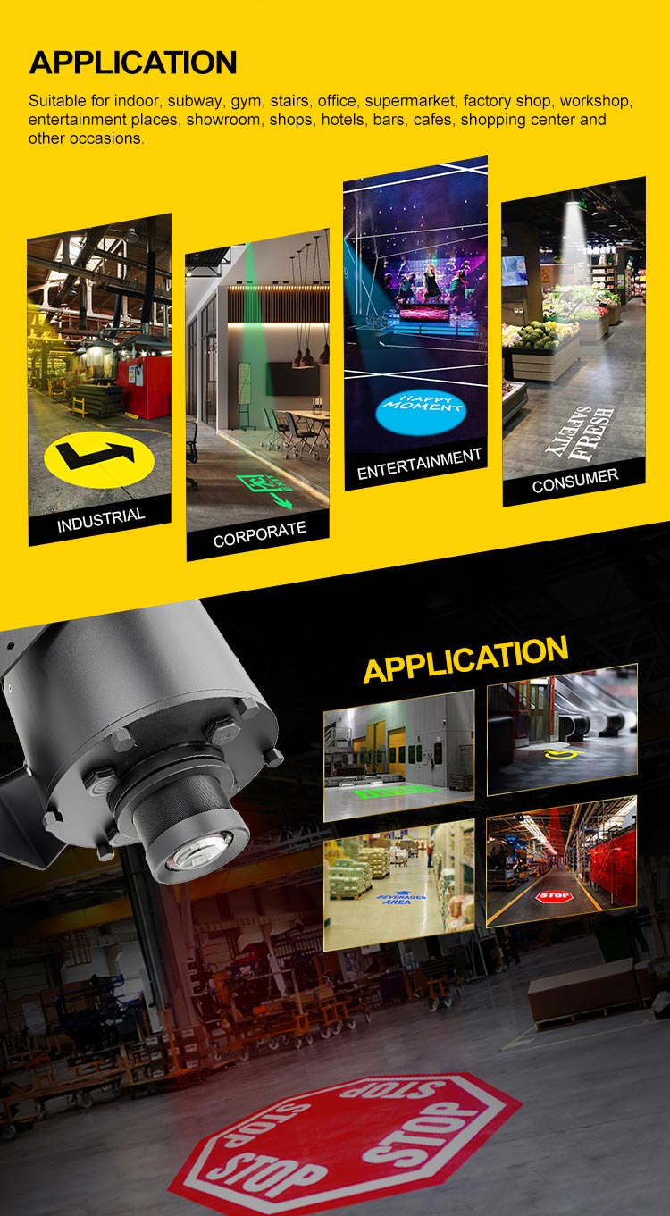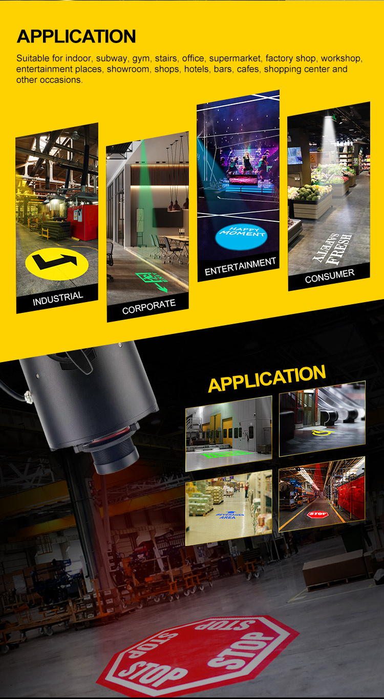 Offers flexible projection angle and distance adjustment, with a wide projection range. Engineered exclusively for industrial scenarios—ideal for warehouse logo projection, zone division, safety notice display, or equipment identification.