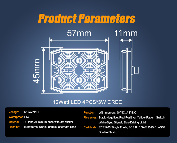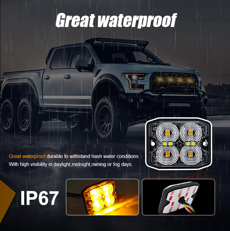 Built with IP67 waterproof rating, this emergency strobe light can withstand extreme temperatures (-30℃ to 50℃), vibration, and corrosion. The durable aluminum housing and impact-resistant lens ensure long-lasting performance in tough trucking environments.