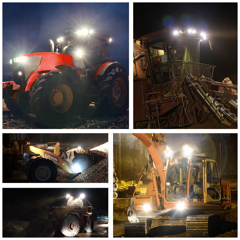 Flood Beam Coverage: illuminates large areas (e.g., crop rows, farmyards, or equipment interiors) without glare, making it ideal for tasks like loading hay, repairing machinery, or navigating uneven terrain at night.