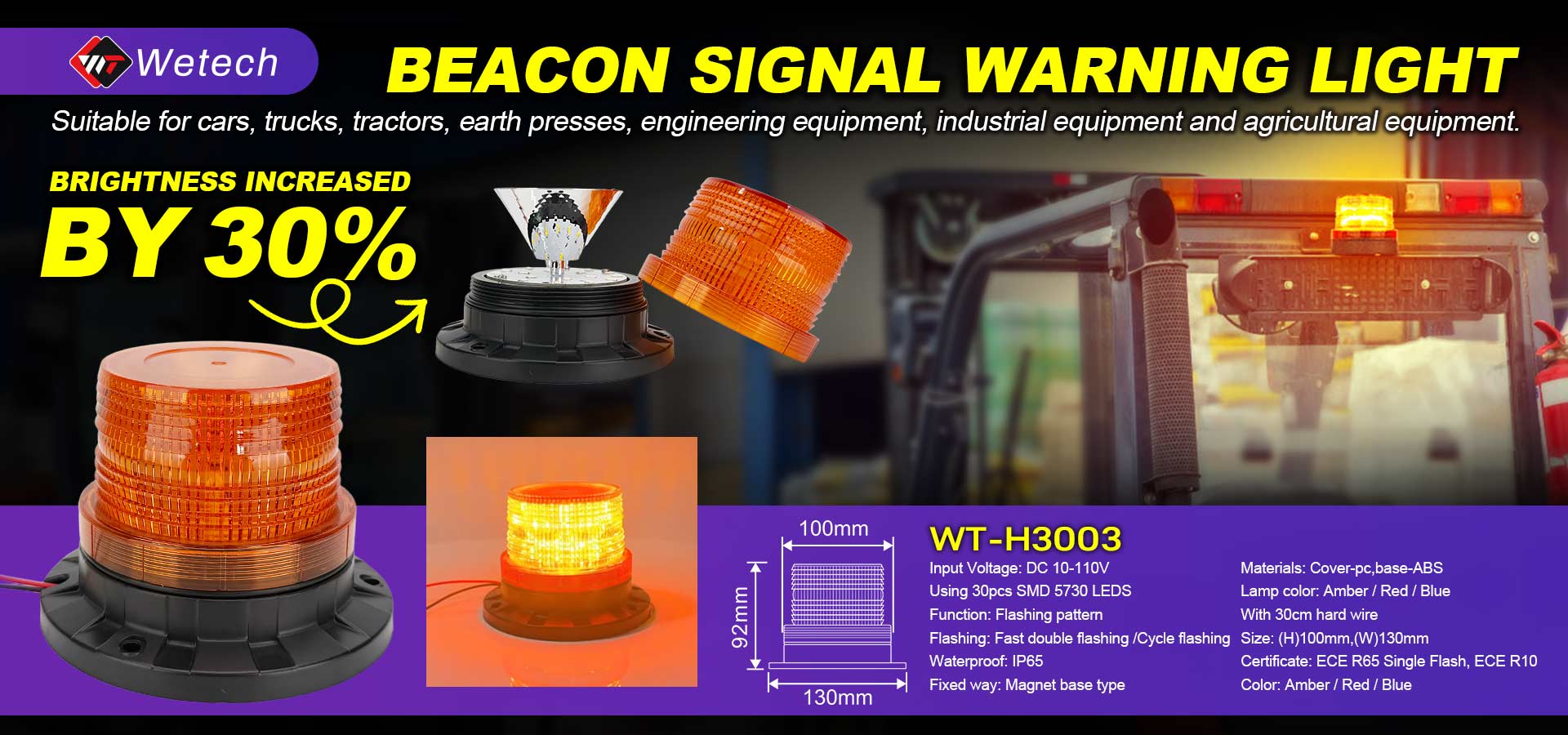 Boost safety and visibility for your vehicle or equipment with the Wetech WT-H3003 Beacon Signal Warning Strobe Light—a rugged, high-performance warning beacon designed for cars, trucks, tractors, construction machinery, and agricultural equipment.