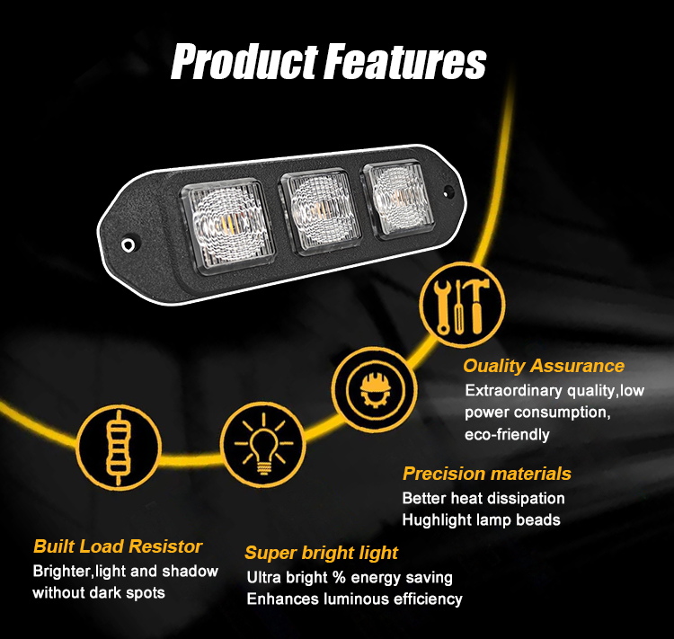 Engineered specifically for vehicle side-mount installation, these surface-mount lights are designed to fit seamlessly on the side of your car, truck, or commercial vehicle. The compact, low-profile design ensures minimal wind resistance and a sleek, OEM-like appearance, while the adjustable mounting bracket allows for precise positioning. Whether you’re looking to upgrade your vehicle’s factory side markers, add extra visibility for off-roading, or equip a commercial fleet with safety lights, our LED strobe lights are the ideal choice. Common applications include: