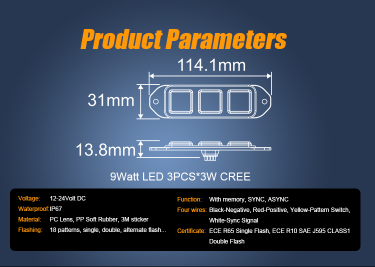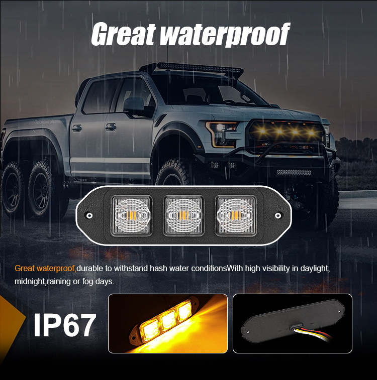Our LED strobe lights boast an IP67 waterproof rating, the gold standard for protection against water immersion and debris. Sealed with a durable, corrosion-resistant housing, ensuring reliable operation in heavy rain, off-road adventures, or coastal environments. Whether you’re driving through a storm or washing your vehicle, the IP67 waterproof design keeps internal components safe, extending the light’s lifespan and reducing maintenance costs.