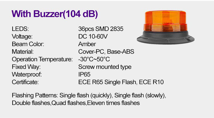 Beacon Warning Light: High-visibility amber unit with audible alarm.