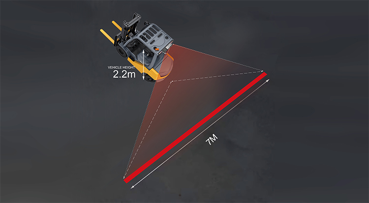 Equipped with a high-precision AI camera sensor, it continuously monitors human movement around the forklift.