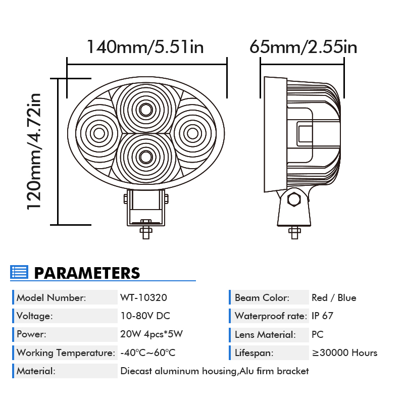 Light Source: High-flux, long-life LEDs (50,000+ hours). Energy-efficient and shock-resistant.