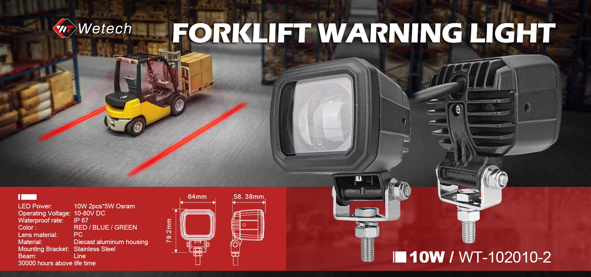 a professional safety solution for forklifts and industrial handling equipment. It projects a high-visibility ground warning zone to alert pedestrians and vehicles of the forklift’s range, reducing collision risks in warehouses, factories, and logistics/construction sites