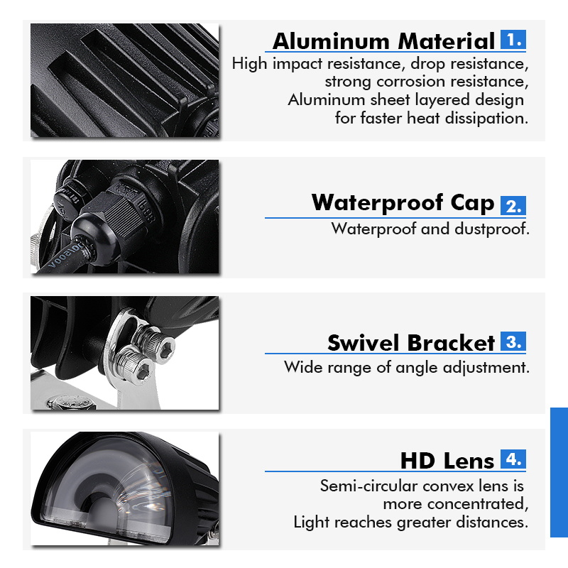20W high-brightness LED chip provides strong, penetrating ARC light, visible from long distances even in bright daylight