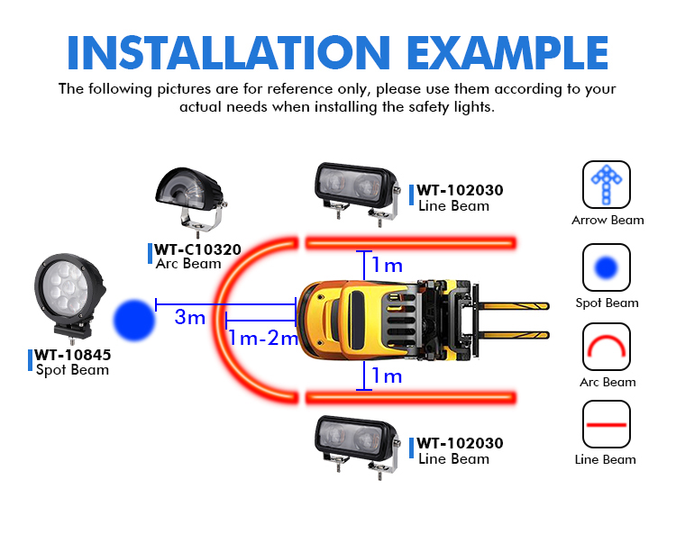 Construction Sites: Use blue/green beams to define work zones, warning workers of heavy machinery movement in chaotic job sites.