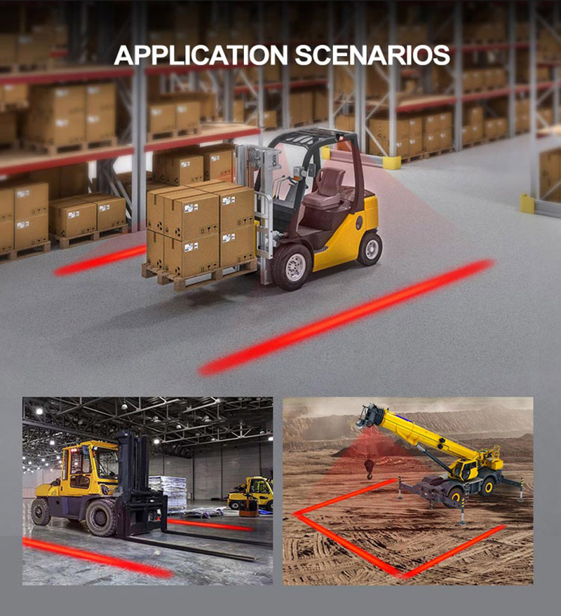 This forklift Radar collision avoidance system uses red and green warning lights to detect blind spots and proximity in dangerous areas. It provides real-time alerts, effectively preventing collisions and enhancing operational safety.