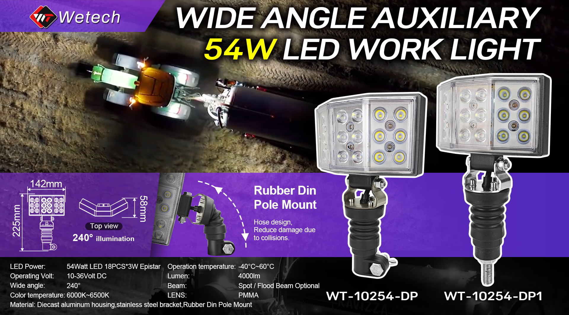 240 Wide Angle 54W LED Work Light - Forklift & Tractor Auxiliary Headlights