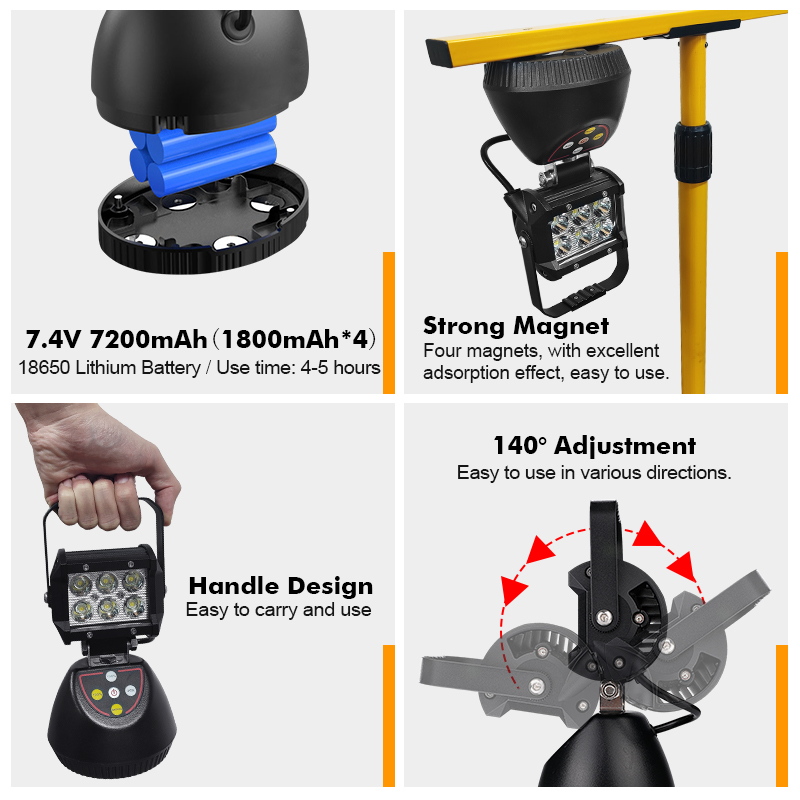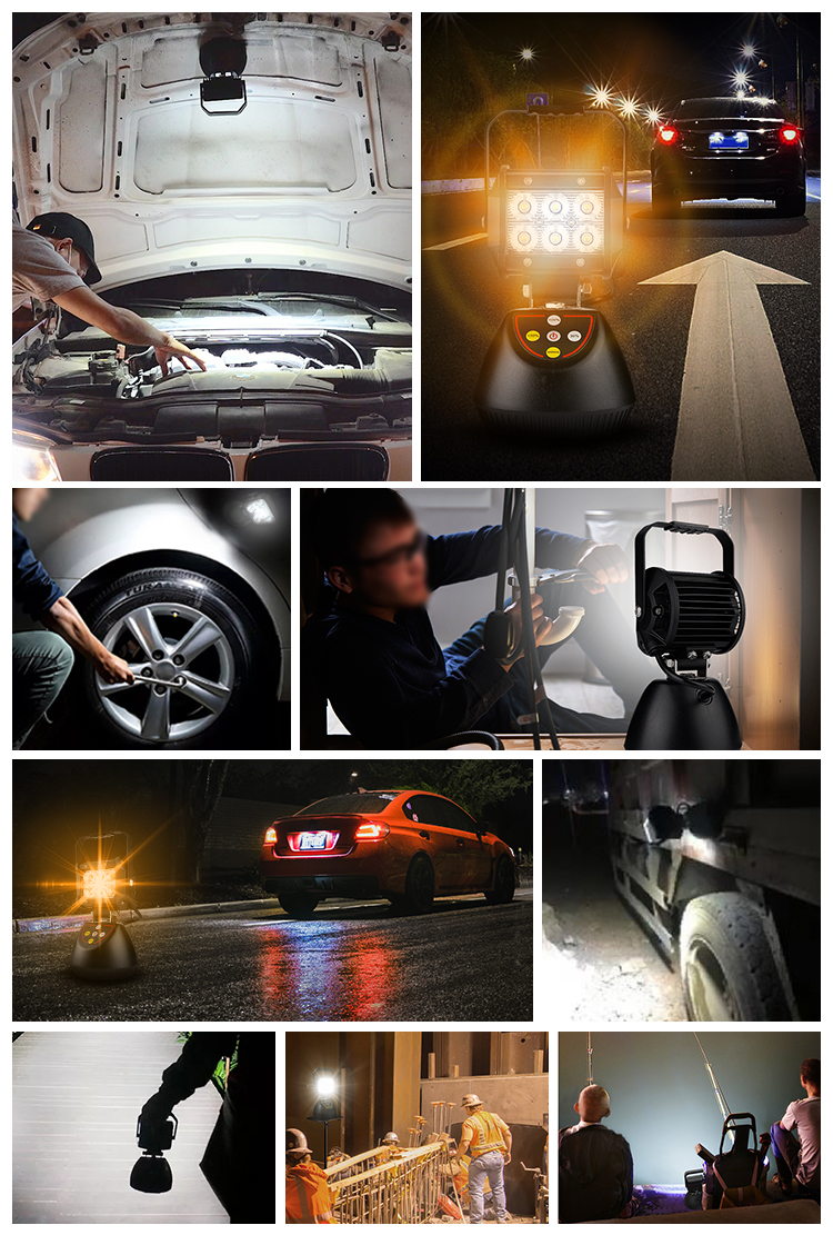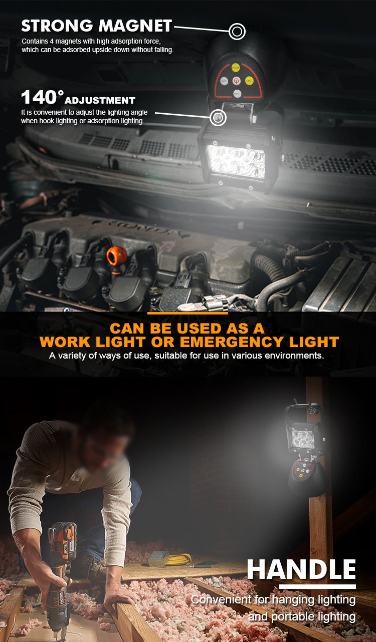 Construction Sites: 18W Portable Magnetic Work Light.