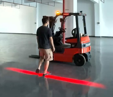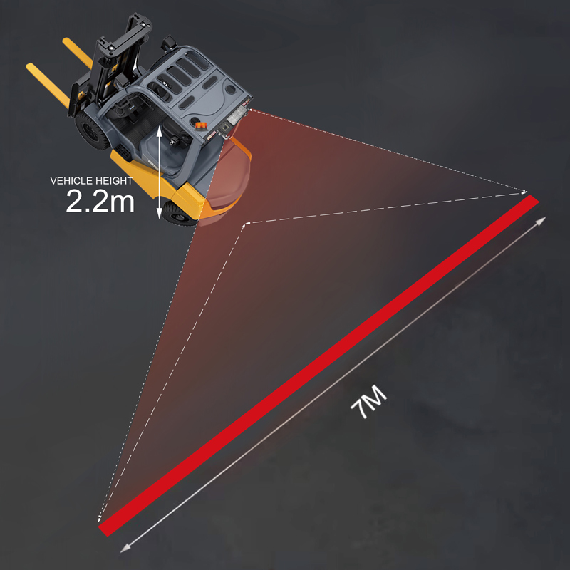 This forklift AI collision avoidance system utilizes red and green visual alerts to monitor blind spots and proximity in hazardous zones. It delivers real-time warnings to effectively prevent accidents and enhance operational safety.