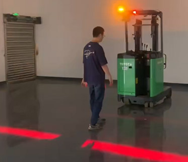 This AI-powered collision avoidance system for forklifts leverages a network of sensors to continuously monitor blind spots and proximity to hazards. It provides real-time alerts via a dynamic red/green warning light interface, effectively mitigating collision risks and enhancing operational safety in industrial environments.