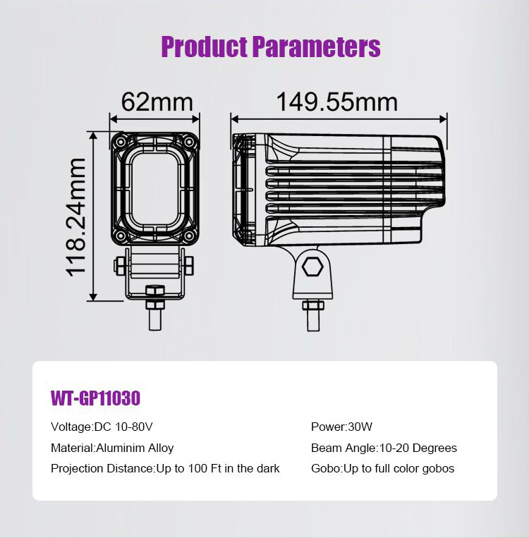 30W Industrial Gobo Logo Projector: 10-80V DC input, perfect for industrial settings. Projects custom logos clearly, durable and easy to install. Ideal for factory floors, warehouses, or industrial zones.