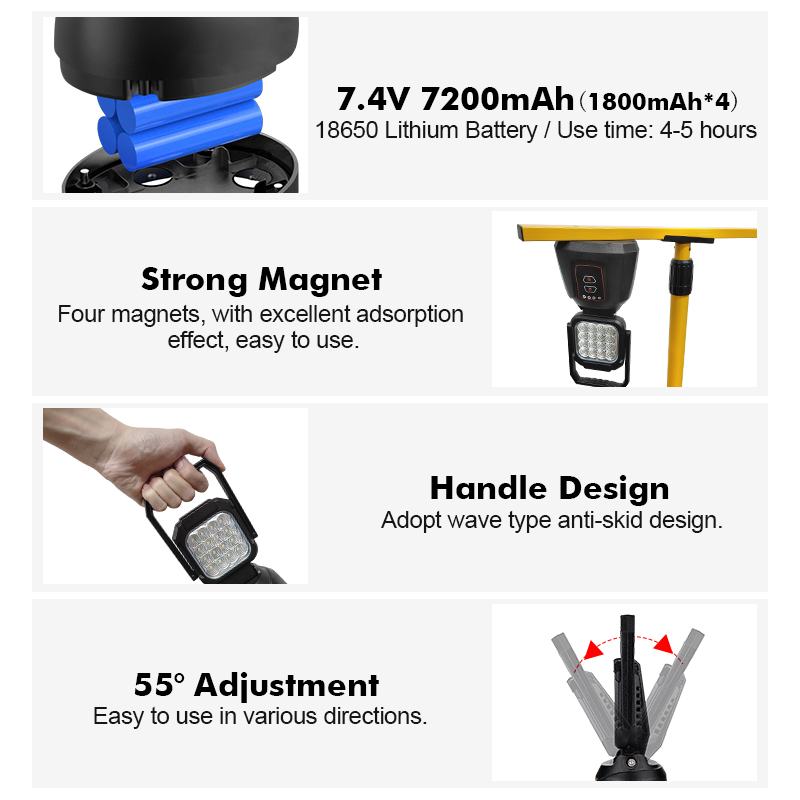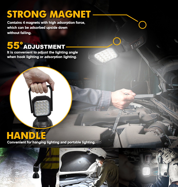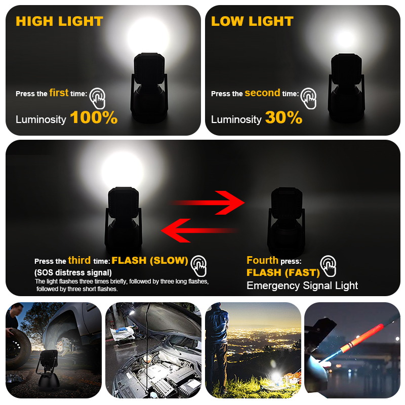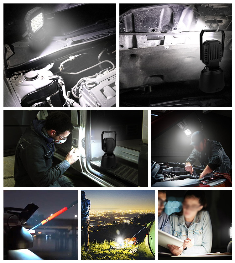 It can be attached inside the car hood or under the chassis, illuminating the maintenance area without being held by hand, avoiding the risk of the handheld lamp slipping.