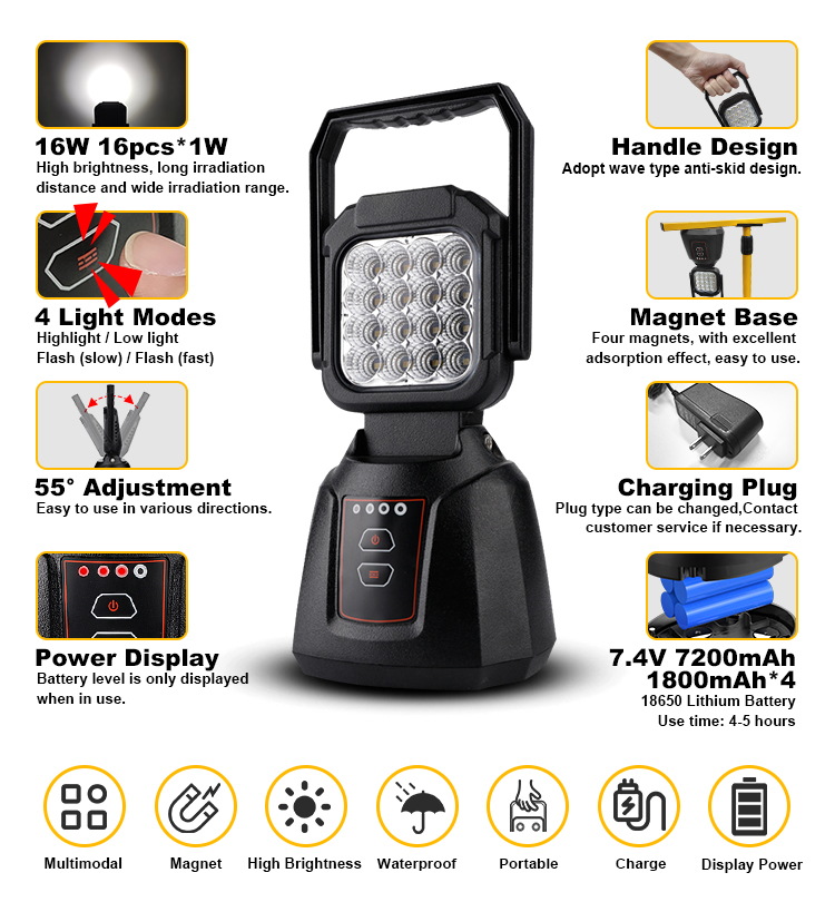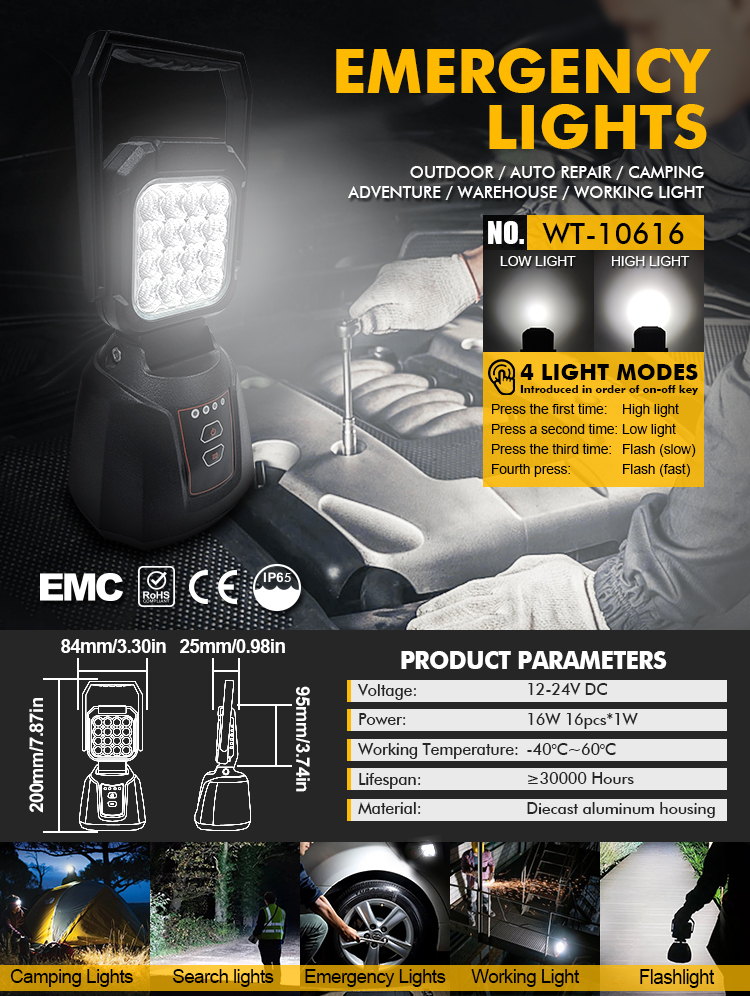 16W Rechargeable LED Emergency Lantern Portable Outdoor Work Light with Flashing Design ODM OEM service Suitable for outdoor camping, car maintenance, factory, warehouse, flashlight lighting: